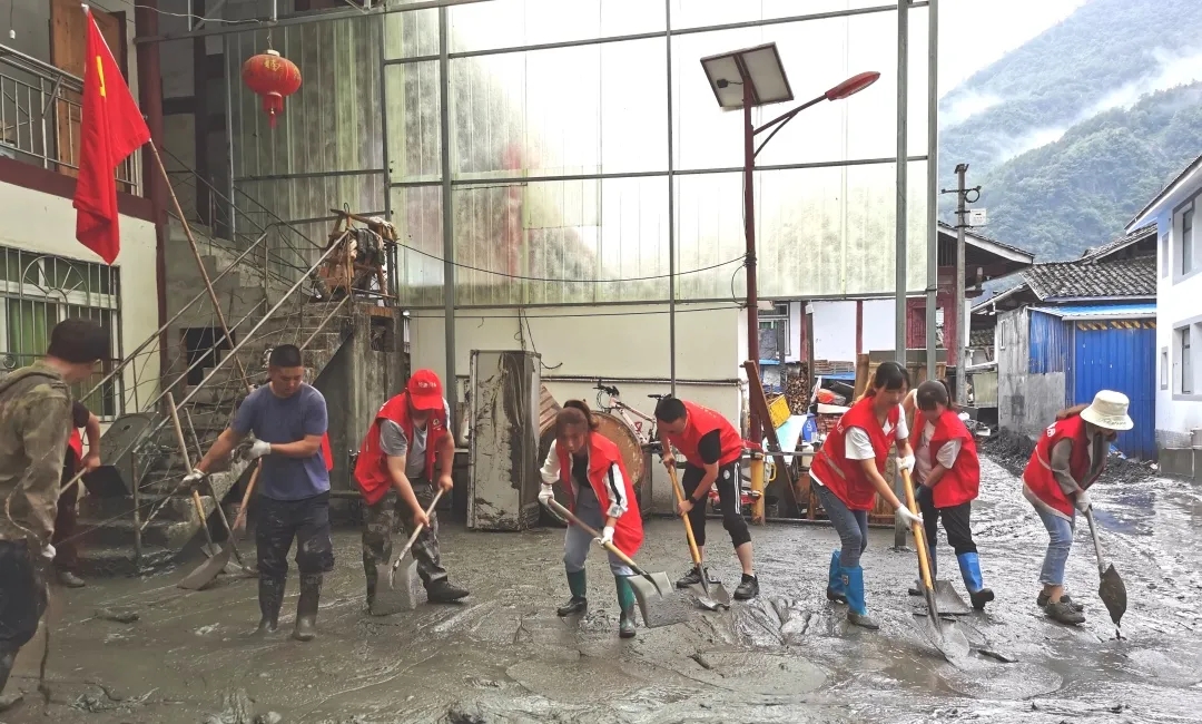 “8·16”特大山洪泥石流发生后,白羊乡多处山体滑坡、垮塌、泥石流、地面裂缝、房屋损毁,水、电、路、通讯、生活保障补给线完全中断,全乡沦为“孤岛”。灾损最重的下河坝村农房基本被淹没,生活保障困难,受灾相对较轻的半边街、溜索头、茶园坪村支部先后主动动员各村党员、干部、群众,为下河坝村群众捐助粮食、油盐等生活物资,并组织人员徒步翻山越岭用背篓将物资背到下河坝村,交到受灾群众的手中。在小河镇机关、新光村等灾损相对较轻的支部组织“1+N”兄弟互助团,帮助双河、李泉等重灾村群众清理淤泥、过渡安置、生产自救,用“力”抗击灾害,用“情”温暖乡邻,用“心”重建家园。知悉灾情后,青云镇干部群众自发组织“我们在一起”爱心募捐活动,捐助资金1万余元,物资若干,一位捐献衣物的大姐说:“虽然衣裳是穿过的,但都洗得干干净净的,他们要是用得上就用,用不上丢了就对了,我们就是尽一点心意!”。一斤油、一碗盐、一块肉、一袋米、一件衣服……表达的是友邻相亲情谊,传承的是守望相助传统,弘扬的是扶危济困美德!