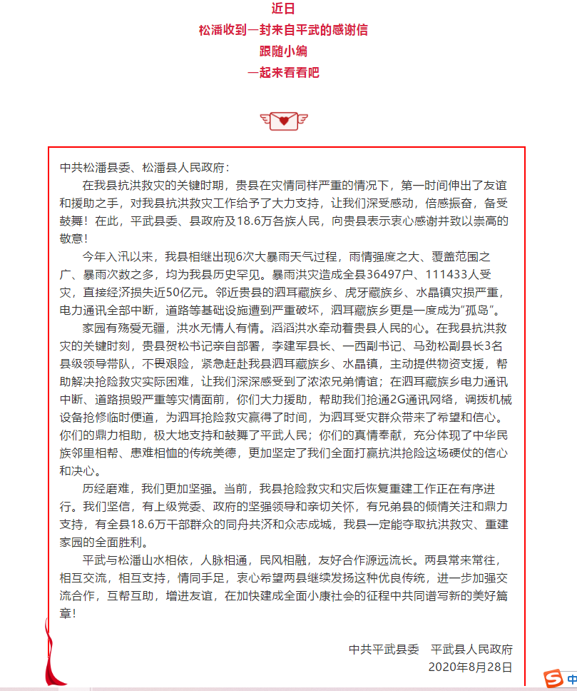 - 松潘县:脱贫路上携手并进,抗洪一线守望相助