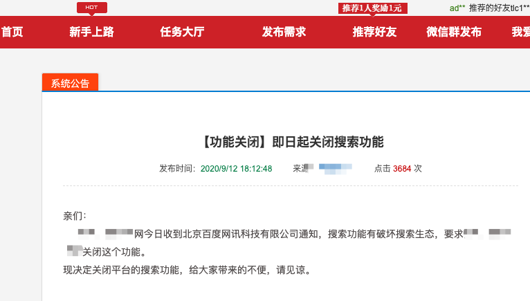 值得注意的是,“金币”是由发布任务的站长买单,该任务平台网站也可以从中获得分成。百度公司技术人员表示,这种发布任务、点击任务的行为,利用了搜索引擎排序算法中“用户点击行为必然占有一定比重”的技术原理,试图通过制造“不反应用户实际搜索需求”的虚假点击行为,人为抬升这些网站在搜索结果中的排名,破坏了搜索引擎原有的排序规则,其中部分网站本身就涉嫌从事违法违规行为。