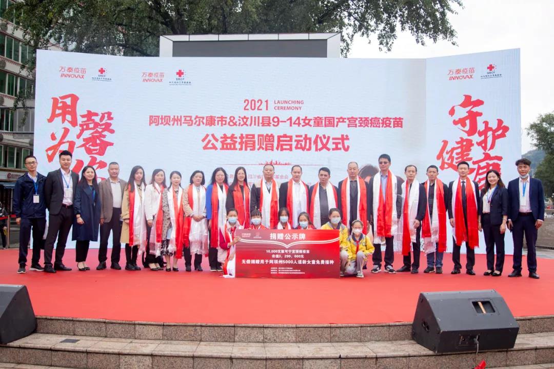 仪式上,四川省红十字基金会联合厦门万泰沧海生物技术有限公司,向阿坝州疾控中心无偿捐赠了10000支由该公司生产的国产双价HPV疫苗。这批疫苗将用于阿坝州部分9至14岁女童免费接种,全程仅需接种2针就能达到保护效力。