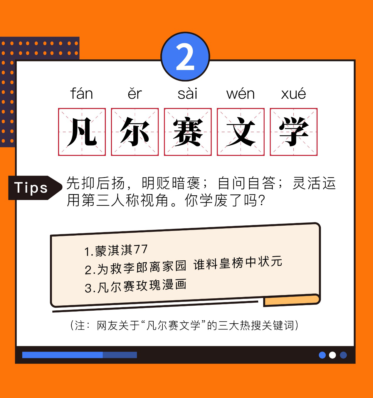 “凡尔赛文学”是网友对热衷于通过先抑后扬、自问自答或第三人称视角,明着诉苦实为炫耀的说话模式的一种调侃。如果说“凡尔赛文学”是明褒暗贬,“内卷”则是对于理性的一种呼唤。“内卷”本意指的是发展到一定阶段后停滞不前或无法转化为另一种高级模式的现象,很快蔓延成为网络热词之一,在万物皆可卷的语境中,人们更多地开始正视非理性的“内卷”现象,积极探索“去内卷化”的改革创新之路。