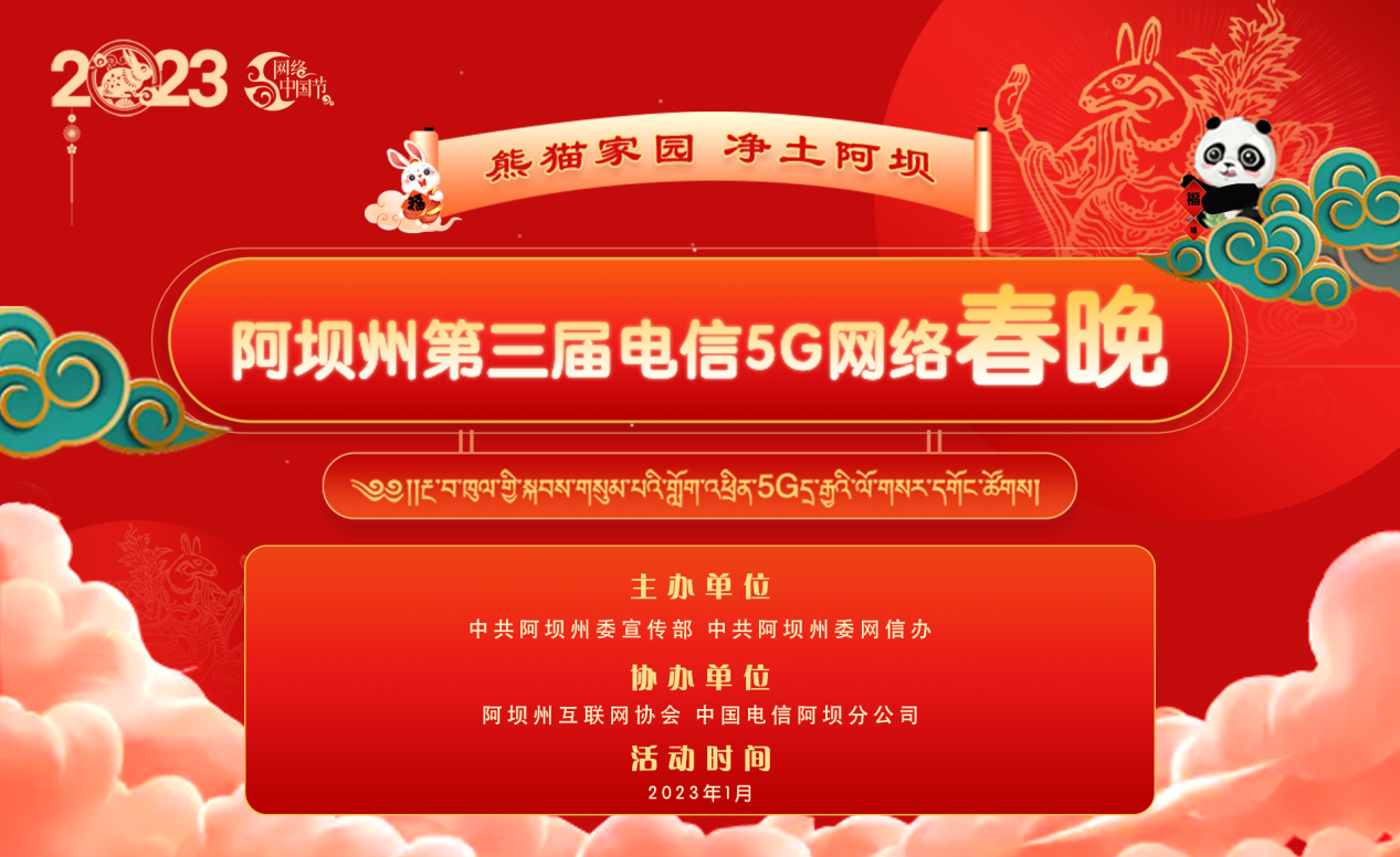 四川新闻网消息 1月18日,由中共阿坝州委宣传部、中共阿坝州委网信办主办,阿坝州互联网协会、中国电信阿坝分公司协办的“熊猫家园 净土阿坝”——阿坝州第三届电信5G网络春晚上线首播,精彩、热闹、感动,惊喜满满。